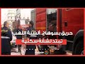 Flames extend to a residential apartment. A fire in a commercial store in Sohag, and civil protection fights the flames