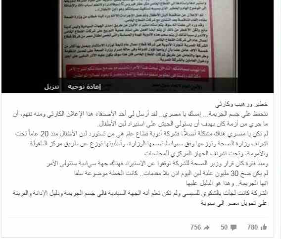 أعلن حي روض الفرج بالقاهرة عن ضبط سيارة تابعة لوزارة الزراعة بحكومة الانقلاب، تبيع أكثر من 2 طن لحوم فاسدة للمواطنين. وقال هشام كمال، رئيس الحى، فى تصريحات صحفية: إنه تم ضبط 1700 كيلو لحوم فاسدة، و20 كيلو لحوم مذبوحة خارج المجزر، و615 كيلو لحوم "قطع" ذائبة، و400 كيلو كبدة "حفظ غير سليم". يأتي هذا في إطار حالة عدم اكتراث العسكر بحياة المواطنين، والتي تهدر يوميا على الطرق البرية وطرق السكة الحديد، وفي المياه خلال رحلات الهجرة غير الشرعية بحثا عن لقمة العيش، فضلا عن المياه والأطعمة الملوثة.